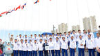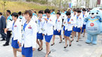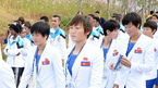 [OSEN=인천, 이대선 기자] 18일 오전 구월아시아드선수촌 국기광장에서 제17회 인천아시아경기대회에 참가하는 각국 선수단의 선수촌 입촌을 환영하는 입촌식이 진행됐다. 입촌식에 참석한 북한 선수단이 이에리사 선수촌장과