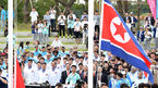 [OSEN=인천, 이대선 기자] 18일 오전 구월아시아드선수촌 국기광장에서 제17회 인천아시아경기대회에 참가하는 각국 선수단의 선수촌 입촌을 환영하는 입촌식이 진행됐다. 입촌식에 참석한 북한 선수단이 국가를 부르고 있다.