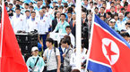 [OSEN=인천, 이대선 기자] 18일 오전 구월아시아드선수촌 국기광장에서 제17회 인천아시아경기대회에 참가하는 각국 선수단의 선수촌 입촌을 환영하는 입촌식이 진행됐다. 입촌식에 참석한 북한 선수단이 국기를 바라보고 있다.