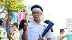 [OSEN=인천, 이대선 기자] 제국의아이들 동준이 2014 인천 아시안게임인 19일 오전 인천 동인천역 북광장에서 성화 주자로 참석했다. 제국의아이들 동준이 성화봉을 들고 달리고 있다. 성화는 백령도와 제주도, 울릉도를 잇는 바