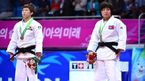 [OSEN=인천,박준형 기자] 20일 오후 인천 도원체육관에서 열린 2014 인천 아시안게임 유도 여자 48kg급 시상식에서 한국 정보경과 북한 김솔미가 포즈를 취하고 있다. 한편 수영, 육상, 야구와 축구 등 36개 종목에서 총 439개의 금메