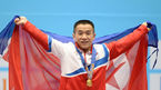 [OSEN=인천, 이대선 기자] 20일 오후 달빛축제공원 역도경기장에서 벌어진 2014 인천 아시안게임 역도 남자 56kg급 경기에서 인상 2차시기를 성공한 북한 엄윤철이 환호하고 있다. /sunday@osen.co.kr