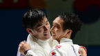[OSEN=고양, 백승철 기자] 20일 오후 고양실내체육관에서 열린 제17회 인천 아시안게임 펜싱 남자 에뻬 개인 결승전 금메달을 차지한 정진선(왼쪽)과 은메달을 차지한 박경두가 포옹을 하고 있다. baik@osen.co.kr