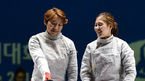 [OSEN=고양, 백승철 기자] 20일 오후 고양실내체육관에서 열린 제17회 인천 아시안게임 펜싱 여자 사브르 개인 결승전 이라진과 김지연이 경기 전 미소를 짓고 있다. 절친한 선후배로 알려진 김지연(26, 익산시청)과 이라진(24, 인