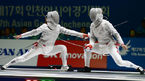 [OSEN=고양, 백승철 기자] 20일 오후 고양실내체육관에서 열린 제17회 인천 아시안게임 펜싱 여자 사브르 개인 결승전 김지연과 이라진이 경기를 펼치고 있다. 절친한 선후배로 알려진 김지연(26, 익산시청)과 이라진(24, 인천중구