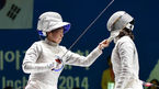 [OSEN=고양, 백승철 기자] 20일 오후 고양실내체육관에서 열린 제17회 인천 아시안게임 펜싱 여자 사브르 개인 준결승전, 이라진(왼쪽)이 중국 리페이와 경기를 펼치고 있다. 김지연(익산시청)과 이라진(인천중구청)이 2014 인천 아