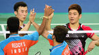 [OSEN=인천, 백승철 기자] 20일 오후 인천 계양체육관에서 열린 제17회 인천 아시안게임 배드민턴 남자 단체전 16강전 한국과 인도의 경기에서 이용대-유연성이 인도 선수들과 인사를 나누고 있다. '셔틀콕 황태자' 이용대와 '돌아