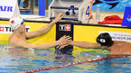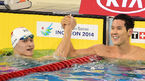 [OSEN=인천, 백승철 기자] 21일 오후 인천 문학박태환수영장에서 열린 제17회 인천 아시안게임 남자 자유형 200m 결승 종료 후 박태환과 쑨양이 하이파이브를 하고 있다. 박태환(인천시청)이 남자 자유형 200m 3연속 우승 도전에 실패