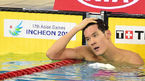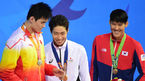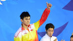 [OSEN=인천, 백승철 기자] 21일 오후 인천 문학박태환수영장에서 열린 제17회 인천 아시안게임 남자 자유형 200m 결승 시상식에서 쑨양(은메달)이 손을 번쩍 들고 있다. 박태환(인천시청)이 남자 자유형 200m 3연속 우승 도전에 실패