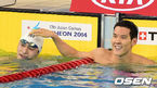 [OSEN=인천, 백승철 기자] 21일 오후 인천 문학박태환수영장에서 열린 제17회 인천 아시안게임 남자 자유형 200m 결승에서 1위를 차지한 하기노 고스케가 기뻐하고 있다. 박태환(인천시청)이 남자 자유형 200m 3연속 우승 도전에 실패