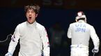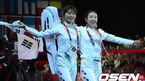 [OSEN=고양,박준형 기자] 22일 오후 경기 고양시 고양체육관에서 열린 '2014 인천아시안게임' 펜싱 남자 플뢰레 4강에서 허준이 승리 후 환호하고 있다 4강에서 결승 진출의 최대관문이 될 일본의 에이스 오타 유키와 대결. 한편 허