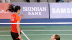 [OSEN=인천, 이대선 기자] 22일 오후 인천 계양체육관에서 2014 인천아시안게임 배드민턴 여자 단체전 결승전이 열렸다. 2세트 한국 성지현이 실점을 하고 있다. 지난 2010 광저우아시안게임 당시 혼합복식의 신백철-이효정이 따낸