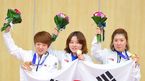 [OSEN=인천,박준형 기자] 22일 인천 옥련국제사격장에서 열린 '2014 인천 아시안게임' 여자 사격 25m 단체전 시상식에서 김장미와 이정은, 곽정혜가 금메달을 수상한뒤 포즈를 취하고 있다. 김장미(22, 우리은행), 이정은(27, KB국민은