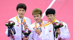 [OSEN=부천, 백승철 기자] 22일 오후 부천시 부천체육관에서 열린 제17회 인천 아시안게임 세팍타크로 남자 더블 경기 시상식에서 은메달을 차지한 한국 임안수, 정원덕, 김영만이 포즈를 취하고 있다. 한국 남자 세팍타크로가 2010