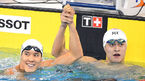 [OSEN=인천,박준형 기자] 23일 오후 인천 문학박태환수영장에서 열린 2014 인천아시안게임 남자 자유형 400m 결승에서 박태환이 금메달을 차지한 쑨양에게 축하의 인사를 건네고 있다. 박태환은 이날 오전 열린 예선에서 3분53초80