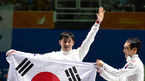 [OSEN=인천, 이대선 기자] 23일 오후 인천 계양체육관에서 2014 인천아시안게임 배드민턴 남자 단체전 결승전이 열렸다. 2경기 1세트에 승리한 이용대, 유연석이 환호하고 있다. 지난 2010 광저우아시안게임 당시 혼합복식의 신백철