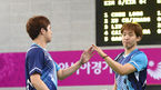[OSEN=인천, 이대선 기자] 23일 오후 인천 계양체육관에서 2014 인천아시안게임 배드민턴 남자 단체전 결승전이 열렸다. 4경기 1세트 한국 김기정과 김사랑이 하이파이브를 하고 있다. 지난 2010 광저우아시안게임 당시 혼합복식의