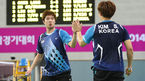 [OSEN=인천, 이대선 기자] 23일 오후 인천 계양체육관에서 2014 인천아시안게임 배드민턴 남자 단체전 결승전이 열렸다. 4경기 1세트 한국 김기정과 김사랑이 득점에 환호하고 있다. 지난 2010 광저우아시안게임 당시 혼합복식의 신
