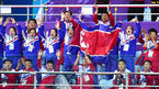 [OSEN=인천, 백승철 기자] 24일 오후 인천 남동체육관에서 열린 2014 인천 아시안게임 기계체조 남자 마루 결승 시작전 리세광이 소개되자 관중석에 있던 북한 선수단이 응원을 펼치고 있다. 한편 이번 아시안게임 대회에는 아시