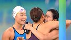 [OSEN=인천,박준형 기자] 25일 인천 문학박태환수영장에서 열린 2014 인천 아시안게임 여자 400m 혼계영에서 한국수영대표팀이 은메달을 차지한후 기뻐하고 있다 한편 박태환은 이날 남자 자유형 100m 결승에서 은메달을 획득했다.