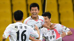 [OSEN=부산, 정송이 기자] 1일 오후 부산 아시아드경기장에서 '현대오일뱅크 K리그 클래식 2014' 부산 아이파크와 상주 상무의 경기가 열렸다. 후반, 동점골을 넣은 상무 박경익이 동료들로부터 축하를 받고 있다. 부산은 최근 6경