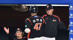 [OSEN=대구, 민경훈 기자] 1일 오후 대구 시민구장에서 '2014 한국야쿠르트 세븐 프로야구' 삼성 라이온즈와 롯데 자이언츠 경기가 열렸다. 2회초 1사 롯데 강민호가 좌월 동점 솔로 홈런을 날린 후 덕아웃에서 김시진 감독과 하이