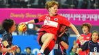 [OSEN=인천,박준형 기자] 1일 오후 인천 선학핸드볼경기장에서 열린 '2014 인천 아시안게임' 여자 핸드볼 한국과 일본의 결승전 전반 이은비가 일본에게 반칙을 얻어내고 있다. 한국 여자 핸드볼은 다시 아시아 정상에 서기까지