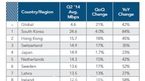 한국 인터넷 접속속도 2위. 한국의 인터넷 접속속도가 2위인 것으로 파악됐다. 클라우드 기업 아카마이는 2일 공개한 2014년 2분기 인터넷 현황 보고서에서 “한국의 인터넷 평균최대접속속도(average peak connection speed)가 72.1Mbps(초