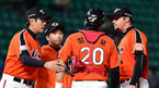 [OSEN=인천, 백승철 기자] 6일 오후 인천 문학구장에서 열린 '2014 한국야쿠르트 세븐 프로야구' SK 와이번스와 한화 이글스의 경기 1회말 1사 만루 정민철 코치가 앨버스와 이야기를 나누고 있다. 아시안게임 휴식기 이후 속절 없