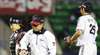 [OSEN=잠실, 김경섭 기자] 7일 오후 서울 잠실구장에서 열린 '2014 한국야쿠르트 세븐 프로야구 LG 트윈스와 삼성 라이온즈의 경기, 7회초 2사 주자 1,2루, LG 정찬헌이 볼넷으로 주자 만루를 만들자 마운드를 직접 방문하고 있다. LG