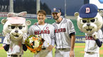 [OSEN=잠실, 이대선 기자] 8일 오후 서울 잠실야구장에서 '2014 한국야쿠르트 세븐 프로야구' 두산 베어스와 KIA 타이거즈의 경기가 열렸다. 경기에 앞서 두산 홍성흔이 개인통산 200홈런 시상식에서 동료 니퍼트와 기념촬영을 하고