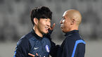 [OSEN=화성, 이대선 기자] 9일 오후 경기 화성 종합경기타운에서 한국 축구대표팀이 훈련을 가졌다. 훈련에 앞서 한국 손흥민과 차두리가 장난을 치고 있다. 축구국가대표팀은 10일 오후 8시 천안종합운동장에서 파라과이를 상대