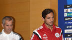 [OSEN=화성, 이대선 기자] 9일 오후 경기 화성 롤링힐스호텔에서 한국전을 앞둔 파라과이 축구국가대표팀 기자회견이 열렸다. 파라과이 빅토르 헤네스 감독과 로케 산타 크루즈가 기자회견장으로 입장하고 있다. 축구국가대표팀