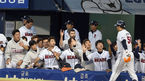 [OSEN=잠실, 김영민 기자] 11일 오후 잠실야구장에서 열린 '2014 한국야쿠르트 세븐 프로야구' 두산 베어스와 LG 트읜스의 경기,3회말 2사 1루 김현수 선재 투런홈런을 날리고 홈인 동료들의 축하를 받고 있다. 매 경기 기적 같은 명