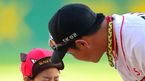 [OSEN=인천,박준형 기자] 11일 오후 인천 문학구장에서 열린 2014 한국야쿠르트 세븐 프로야구 SK 와이번스와 넥센 히어로즈의 경기전 타블로가 하루에게 뽀뽀를 하고 있다 4위 LG를 2경기 차로 바짝 뒤쫓고 있는 SK는 4강 가능성이