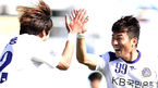 [OSEN=대전, 김경섭 기자] 18일 오후 대전 한밭종합운동장에서 열린 '2014 현대오일뱅크 K리그 챌린지 32라운드' 대전 시티즌과 FC안양의 경기, 전반전 안양 정재용이 선제골을 넣고 김재웅과 기쁨을 나누고 있다. 시즌이 얼마 남지
