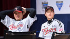 [OSEN=창원, 이대선 기자] 18일 오후 마산종합운동장 내 올림픽기념공연장에서 2014 프로야구 준플레이오프 NC와 LG의 미디어데이가 열렸다. 공식 행사에 앞서 LG 이진영과 신정락이 자리에 앉아 행사를 기다리고 있다. LG는 시즌 막