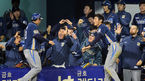 [OSEN=잠실, 백승철 기자] 24일 오후 서울 잠실구장에서 열린 2014 한국야쿠르트 세븐 프로야구 포스트시즌 준플레이오프 3차전 LG 트윈스와 NC 다이노스의 경기 8회초 2사 3루 김태군의 1타점 적시타에 홈을 밟은 권희동이 덕아웃에