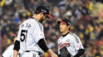 [OSEN=잠실, 지형준 기자] 24일 오후 서울 잠실구장에서 열린 2014 한국야쿠르트 세븐 프로야구 포스트시즌 준플레이오프 3차전 LG 트윈스와 NC 다이노스의 경기, 6회초 1사에서 NC 이호준이 솔로포를 날리고 더그아웃에서 김경문 감