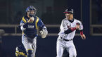 [OSEN=잠실, 곽영래 기자] 24일 오후 서울 잠실구장에서 열린 '2014 한국야쿠르트 세븐 프로야구' 포스트시즌 준플레이오프 3차전 LG 트윈스와 NC 다이노스의 경기, 2회말 1사 2,3루 LG 이진영이 최경철의 기습번트때 홈으로 쇄도하다