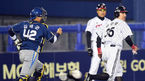 [OSEN=잠실, 백승철 기자] 24일 오후 서울 잠실구장에서 열린 2014 한국야쿠르트 세븐 프로야구 포스트시즌 준플레이오프 3차전 LG 트윈스와 NC 다이노스의 경기 2회말 1사 2,3루 최경철의 번트 상황 홈으로 쇄도하던 3루주자 이진영
