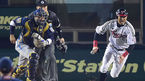 [OSEN=잠실, 곽영래 기자] 24일 오후 서울 잠실구장에서 열린 '2014 한국야쿠르트 세븐 프로야구' 포스트시즌 준플레이오프 3차전 LG 트윈스와 NC 다이노스의 경기, 2회말 1사 2,3루 LG 이진영이 최경철의 기습번트때 홈으로 쇄도하다