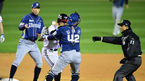 [OSEN=잠실, 지형준 기자] 24일 오후 서울 잠실구장에서 열린 2014 한국야쿠르트 세븐 프로야구 포스트시즌 준플레이오프 3차전 LG 트윈스와 NC 다이노스의 경기, 2회말 1사 2,3루에서 LG 이진영이 최경철의 스퀴즈 번트에 협살에 걸