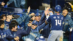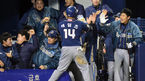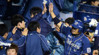 [OSEN=잠실, 백승철 기자] 24일 오후 서울 잠실구장에서 열린 2014 한국야쿠르트 세븐 프로야구 포스트시즌 준플레이오프 3차전 LG 트윈스와 NC 다이노스의 경기 1회초 2사 2루 이호준의 1타점 적시타에 홈을 밟은 테임즈가 덕아웃에