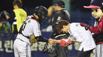 [OSEN=잠실, 백승철 기자] 24일 오후 서울 잠실구장에서 열린 2014 한국야쿠르트 세븐 프로야구 포스트시즌 준플레이오프 3차전 LG 트윈스와 NC 다이노스의 경기 시작전 최강창민이 시구를 마치고 최경철과 악수를 나누고 있다. 반