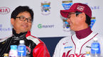 [OSEN=목동,박준형 기자] 26일 서울 목동구장에서 열린 2014 한국야쿠르트 세븐 프로야구 포스트시즌 플레이오프 넥센과 LG의 미디어 데이에 LG 양상문 감독이 이택근과 강정호를 바라보자 넥센 염경엽 감독이 미소 짓고 있다. LG는
