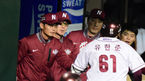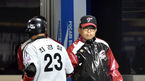 [OSEN=목동,손용호 기자] 28일 오후 서울 목동구장에서 열린 한국야쿠르트 세븐 프로야구 플레이오프 2차전 넥센과 LG의 경기,8회초 1사 만루 박용택의 안타때 홈을 밟은 최경철을 양상문 감독이 반갑게 맞이하고있다. 지난 27일 목