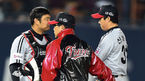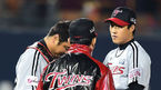 [OSEN=목동,박준형 기자] 28일 오후 서울 목동구장에서 열린 한국야쿠르트 세븐 프로야구 플레이오프 2차전 넥센과 LG의 경기,8회초 넥센 염경엽 감독이 마운드에 올라 한현희 투수, 박동원 포수와 이야기를 나누고 있다. 지난 27일
