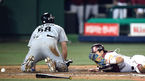 [OSEN=목동,손용호 기자] 28일 오후 서울 목동구장에서 열린 한국야쿠르트 세븐 프로야구 플레이오프 2차전 넥센과 LG의 경기,5회초 1사 2,3루 오지환의 1루 땅볼, 스나이더가 홈을 파고들어 세이프, 타자주자 오지환이 2루를 노려