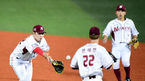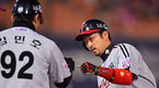 [OSEN=목동,박준형 기자] 28일 오후 서울 목동구장에서 열린 한국야쿠르트 세븐 프로야구 플레이오프 2차전 넥센과 LG의 경기, 2회초 LG 선두타자 이병규가 안타를 날리고 김민호 코치와 하이파이브를 하고 있다. 유이는 김성갑 넥